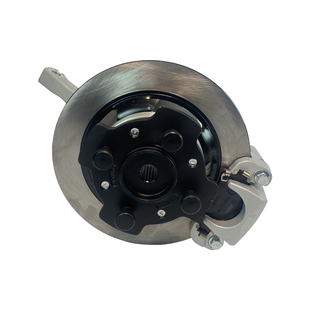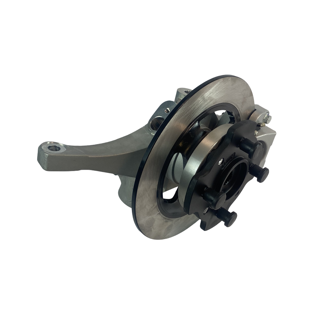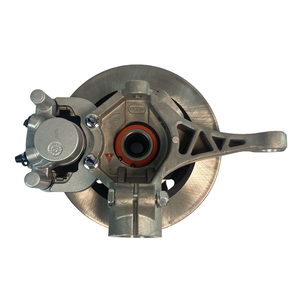 Komplett bakre navhållare med bromsskiva, hjulnav, bromsok och spindelhus till Chatenet mopedbilar med Kailing-bromssystemet.